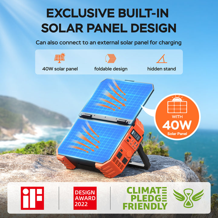 [Award-Winning Solar Design]: 2022 German IF Design Award winner, built-in MPPT controller, foldable solar panel, and expandable for higher efficiency. Supports charging while in use.